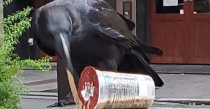 貪吃烏鴉用喙戳爆杯子「偷喝咖啡歐蕾」 一口下去忍不住猛吐!