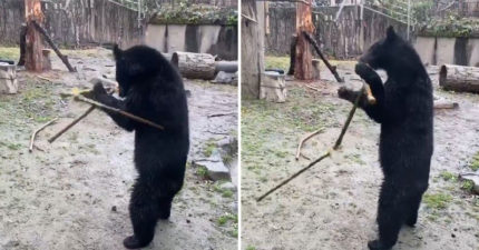影/動物園驚見黑熊「站著耍三截棍」 員工:牠花2年自學!