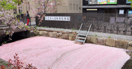 日網友捕捉「無人的春景」 河面變身「櫻花地毯」美到像仙境❤