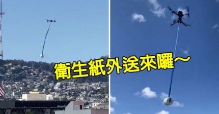影/卫生纸用完怎么?他求助朋友下秒「物资无人机」从天空飞来