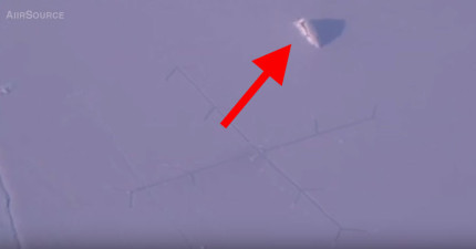 直升機從空中拍攝北極圈,結果一個不明物體突然從冰層底下爆出來!