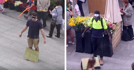 這名白人和黑人矇著眼睛張開手邀請路人給他們擁抱,接著分別發生的畫面讓我對人性真的有點害怕了…