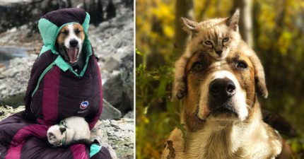 主人一開始擔心狗狗不會對貓咪友好,但現在他們的「史詩級冒險照」讓所有網友都眼紅了!