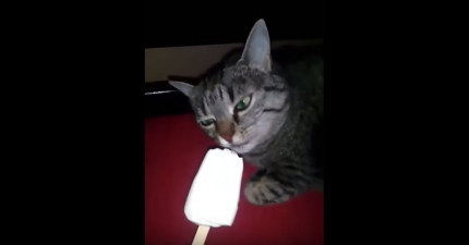 貓咪在吃冰棒的時候完全沒準備好忽然極冰衝腦,貓咪程式cat.exe樂立刻發生錯誤。