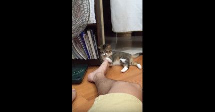 貓咪在聞完主人太臭的腳後大腦完全無法HOLD住,接著失去理智!