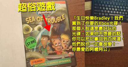 小男生收到祖父母的超老舊遊戲光碟禮物還以為他們還當他是小孩,結果打開來時才發現是被耍慘了!