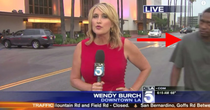 右邊這老兄以為亂入會很好笑,結果女記者完全被嚇到差點往生!