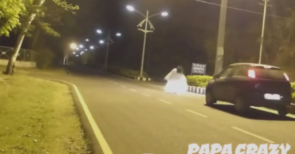 如果不想要被車撞到躺在地上流血尖叫,最好不要扮鬼在路上惡整人。