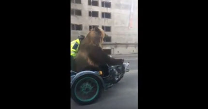 只有在俄羅斯才會發生!網友拍到熊熊在馬路上騎摩托車!