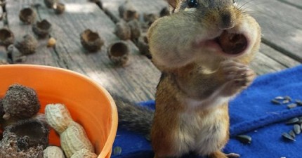 這些貪心的花栗鼠不知道嘴裡不能塞這個多的食物嗎,都不知道這樣已經萌死多少人了呢