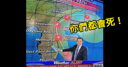 美國氣象播報員報導即將來臨的颶風,跟所有觀眾預告「你們都會死…喔對了你們孩子也會死」。