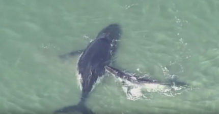 鯨魚媽媽不小心游到水太淺的區域,鯨魚寶寶拼命救援影片超感人!