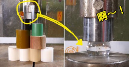 液壓機重出江湖「挑戰9種不同屬性的奇怪塑膠」,這個透明的塑膠壓爆後的反應超級爆炸!
