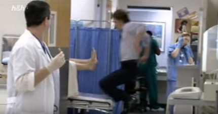 一名醫生聽到走廊一陣急促的腳步聲,接著看看看這名孕婦的兩條腿!