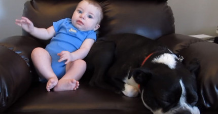 小寶寶便便塞住一直努力終於最後逼出來了!但旁邊「明明說好要照顧寶寶」的狗狗反應讓我笑壞了!