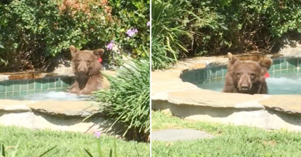 棕熊侵門踏戶「霸佔按摩浴缸+喝調酒」 泡好泡滿一個不小心醉了~