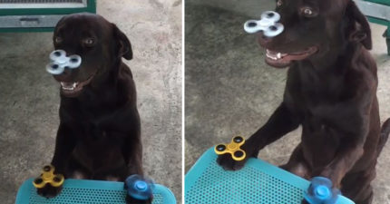 哥走的是特技!拉拉狂轉「3顆指尖陀螺」 呆萌看主人:能自己賺肉肉了XD