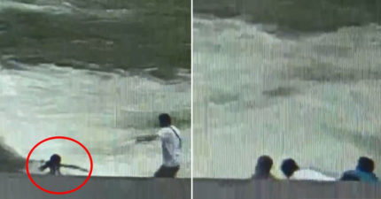 強國妹河邊洗腳「被抓進漩渦」 醫生抓釣竿跳水救人:她頭都淹了