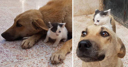 母愛不分界!失子狗媽媽遇上孤兒小貓 成為彼此家人再也不孤單♥