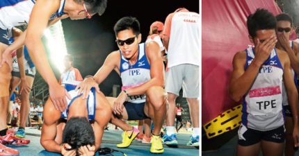 1600接力判失格,「第4名成績取消」中華隊小將楊隆翔自責跪地痛哭。