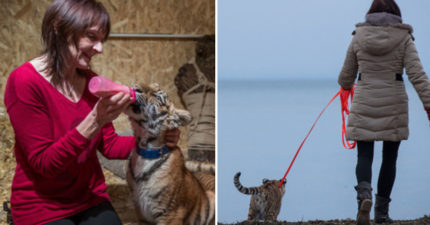 小老虎被遺棄她不捨收養,幾個月「兇猛模樣成超軟萌Kitty貓」!與媽媽一起出門散步成最後幸福時光…(溫馨影片)