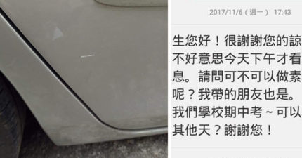 A到車誠實留電話道歉「結果出乎意料」!車主感動請吃「鹹豬肉吐司」,學生:我吃素…