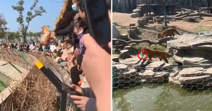 中國動物園讓遊客「丟活雞餵老虎」被罵殘忍 園方:正常野獸行為展示