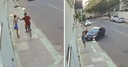 影/妹子路邊「滑手機」被抽走!英勇駕駛一看「急轉彎」小偷下場超慘