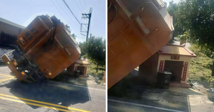 神威顯赫!「載孕婦」22噸貨車翻覆 霸氣小廟竟「神力扛住」