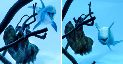 第一次看到樹懶 海豚被萌到「姨母寵溺笑」嗨到轉圈圈:這生物好怪!