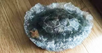 龜龜散步誤闖「大自然製冰機」 慘被凍成「龜冰」主人崩潰