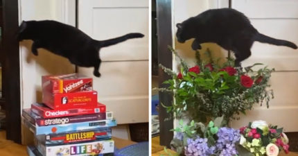被膠帶整過?黑貓「經過門口」就高空彈跳…連人都被當跳箱