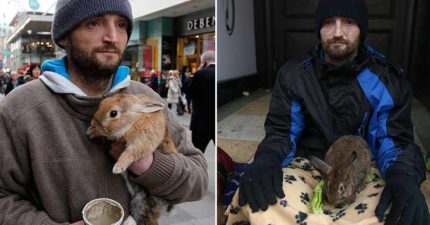 影/流浪漢的「寵物兔」被惡人丟進河 他跳水「心碎祈禱」網淚崩:上帝快顯靈…
