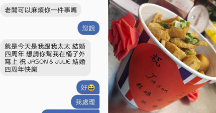 最平凡的幸福!他結婚4周年給老婆「真的不愁吃」 串通鹹酥雞老闆愛的套餐…網友:嫁對了