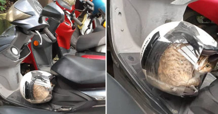 正准备牵车…惊见安全帽被偷用! 「虎斑色毛怪」完全不想动:你自己走回家吧