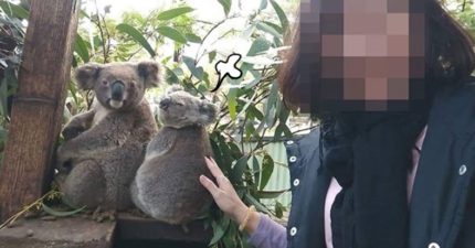 媽媽開心和無尾熊合照 「鹹豬手」被鄙視:摸屁屁請付錢