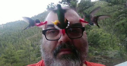 大叔想當白雪公主決定「用頭跟蜂鳥搏感情」!