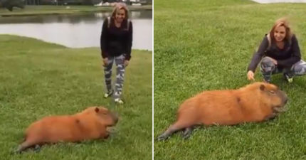 女子偷摸「殺手水豚」直接倒下 過來人警告:誰說牠無害?
