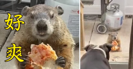 土撥鼠「爽吃披薩還炫耀」!呆汪隔玻璃目睹大傻眼…