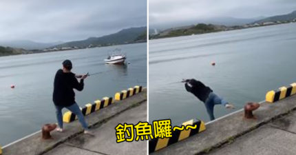 釣魚「想耍帥」集氣助跑 悲劇「腳滑」慘變巨大魚餌!