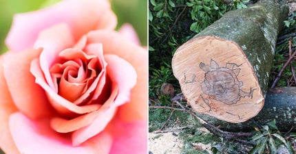 網友砍樹驚見「超唯美玫瑰花」藏在樹裡 他驚呆:難道是仙境標誌?