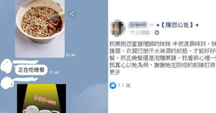 醫護妹「穿整天防護衣全濕」 凌晨傳訊「吃晚餐」哥看圖秒鼻酸:是泡麵…