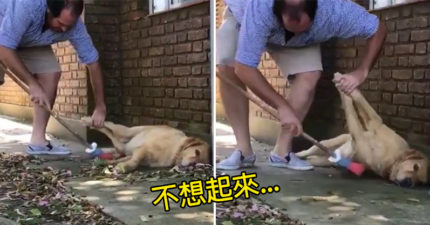 主人掃地「懶汪堅持不移位」 主人超無奈:牠叫做懶惰!