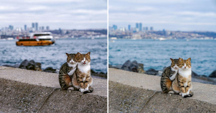 攝影師巧妙捕捉「浪貓緊緊依偎」模樣!超親人小貓闖入下午茶時間太可愛