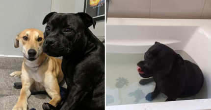 比特犬每晚都消失!主人收到照片才發現秘密:牠每天溜去鄰居家洗澡
