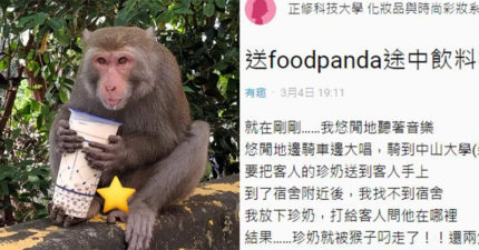 外送珍奶慘被「猴子打劫」!她無奈「2杯都被搶」客服荒謬回:有拍到照嗎?