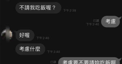 約妹吃飯「請客要考慮」被放鳥 無辜男傻眼:是我的問題?