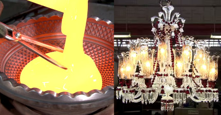 看他如何把熔化玻璃用「超神技手藝」做成超豪華水晶燈,這過程比看電影還過癮啊!