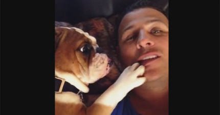 他跟朋友說他狗狗睡前會做一件很奇怪的事情他們都不相信,大家看到都萌翻了…
