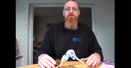 他买了这个不寻常的洋娃娃,然后「按照说明书指示」把它弯成这样后然后点火…OMG!